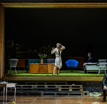 Scenografia spektaklu w stylu art déco dopełniła całości, tworząc przestrzeń, która zarówno zachwyca elegancją formy, jak i potęguje teatralne emocje. Jej geometryczna precyzja i stylowe odniesienia epoki nadają przedstawieniu nie tylko estetyczną klasę, ale również spójny kontekst, w którym historia i muzyka znajdują swoje idealne ramy.